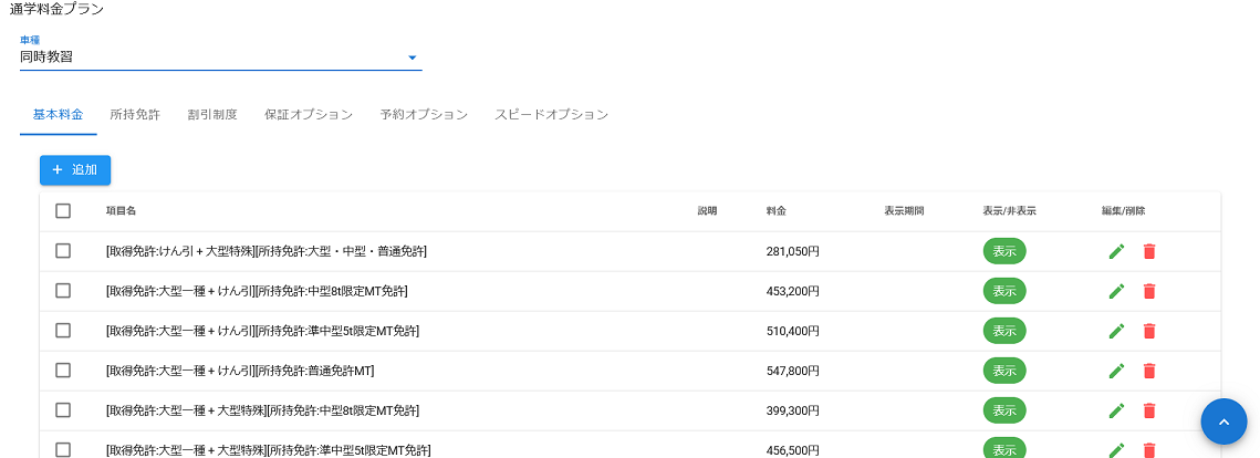 新規で登録する場合は左上の青い「+追加」のボタンをクリックします。