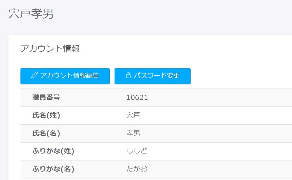 - 統括課長のアカウントで 職員管理WEBにログインしますと 個人ページ「アカウント情報」に 職員番号 が 表示されています。