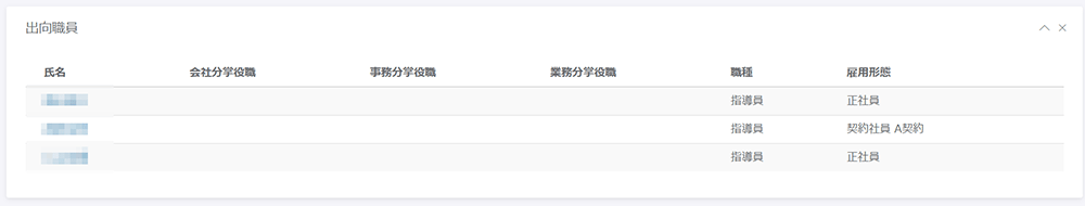 出向中の職員は現職員一覧の下の「出向職員」の欄に表示されます。
