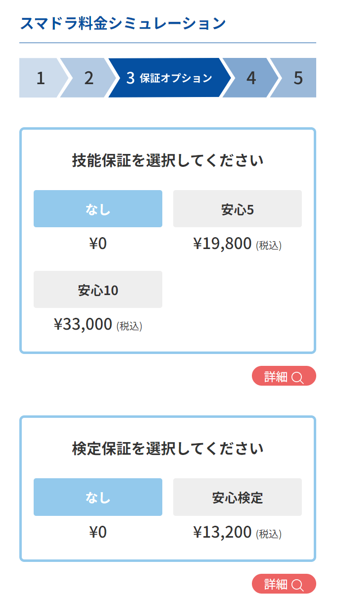 『保証オプション』に入力したプランが料金シミュレーション3ページ目(保証オプション)と、
