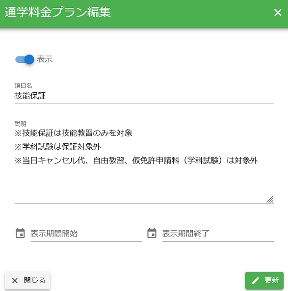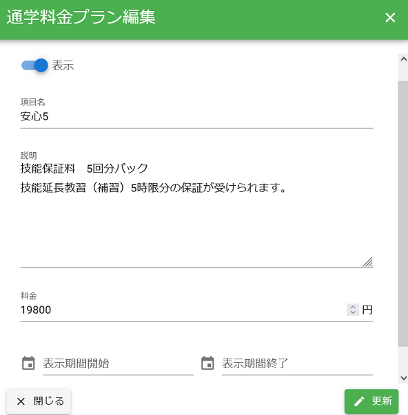 ※すでに登録されてる項目名を変更しないでください。プラン一覧ページに表示されなくなりますのでDSEまでご連絡ください。