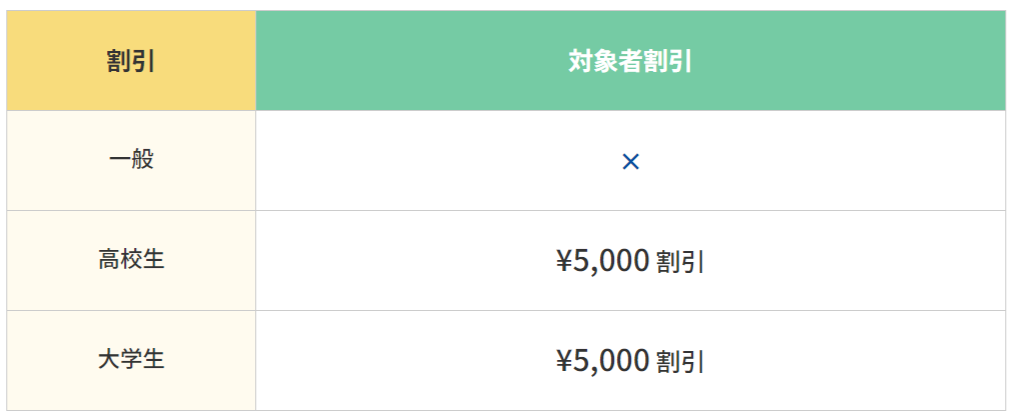 対象者割引を設定してる場合はこちらの小項目に表示させたい項目(対象者)を登録します。