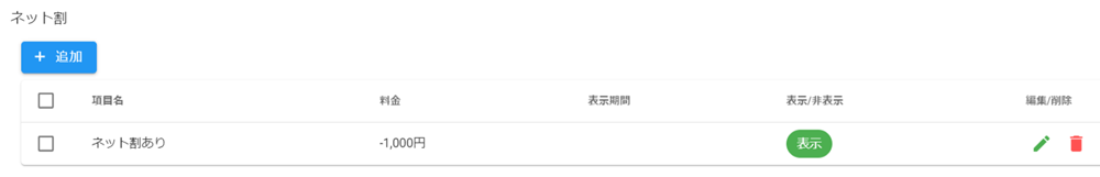 ネット割を設定してる場合はこちらの小項目に「ネット割あり」を登録します。(なしの場合は登録しません。)