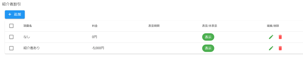 紹介者割引を設定してる場合はこちらの小項目に以下のように登録します。