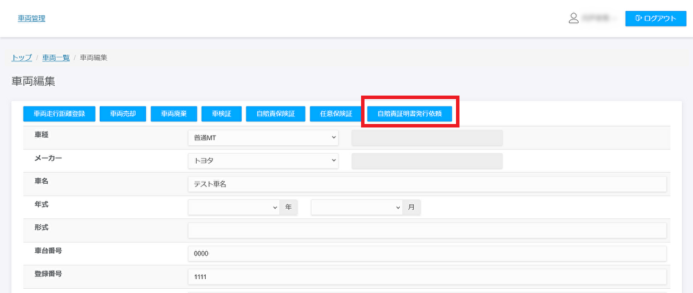 車両管理画面で自賠責証明書発行依頼をかけられるようになりました。