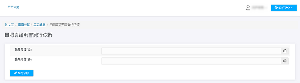 保険期間(始)と保険期間(終)を入力したら発行依頼ボタンをクリックしてください。