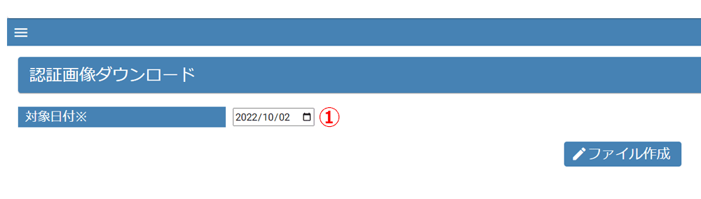 ① 日付を選択し「ファイル作成」ボタンを押すとダウンロードファイルを作成する準備が始まります。