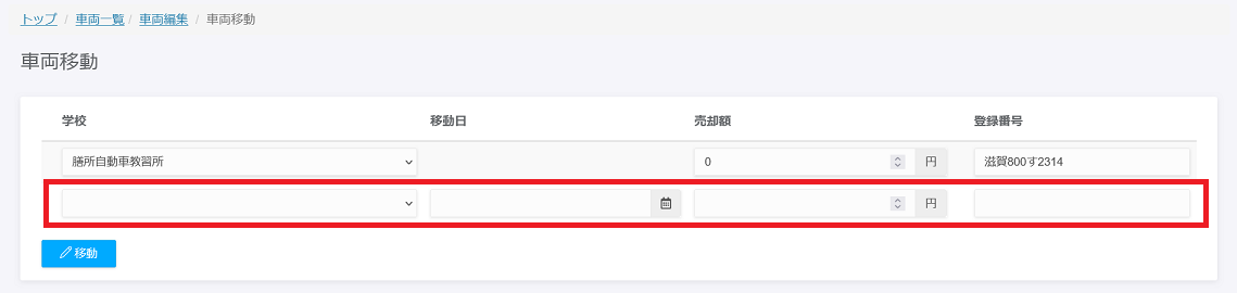 学校・移動日・売却額・登録番号を入力してから移動ボタンをクリックして下さい。