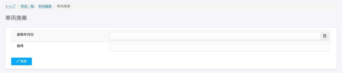 廃車年月日と備考を入力してから廃棄ボタンをクリックして下さい。