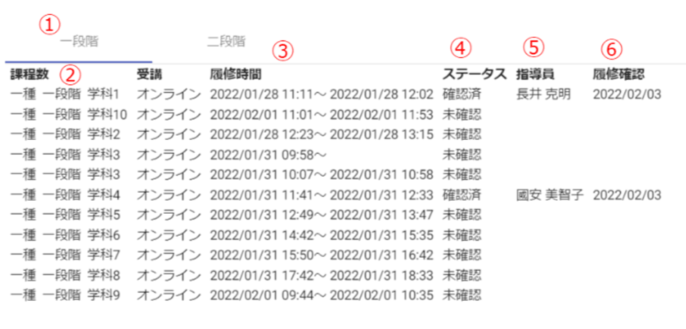 - ※「未確認」は、管理画面TOPページの 履修一覧 に表示されています。