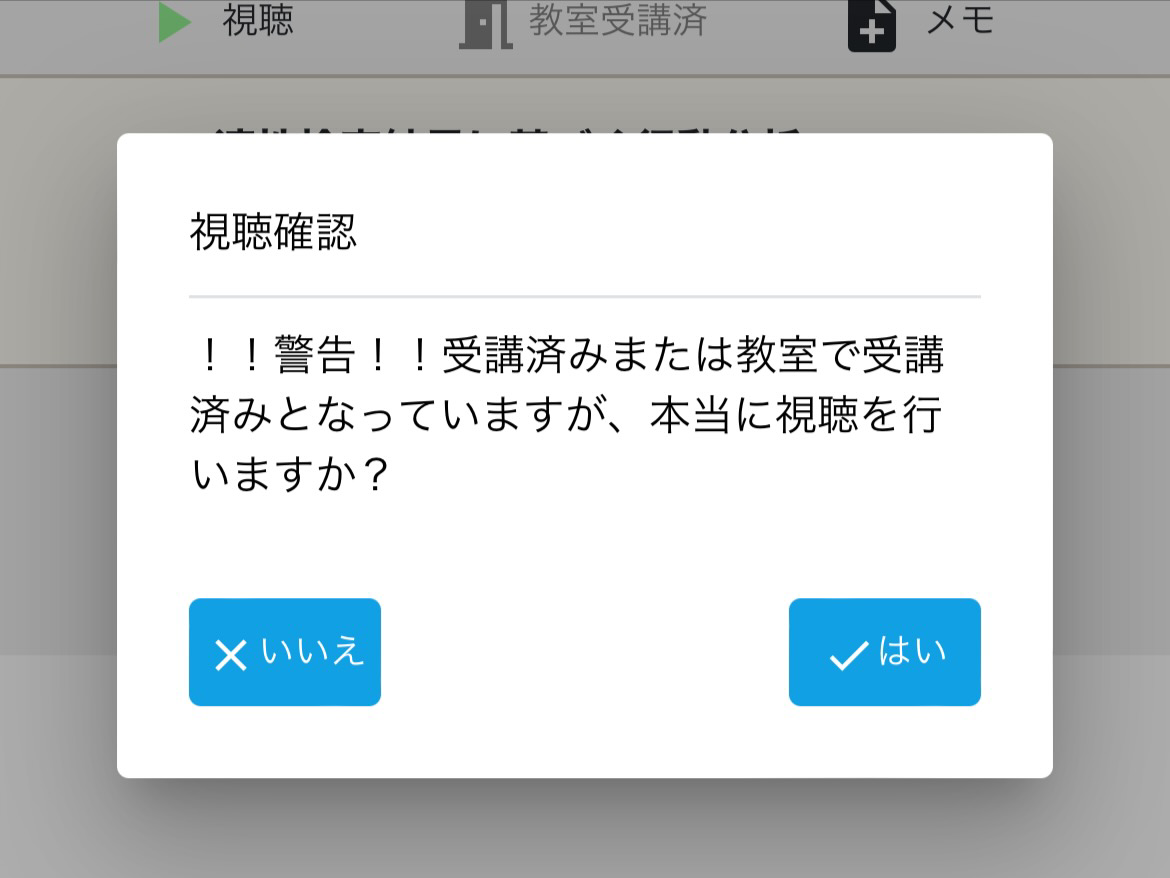 - 初回の受講時のみ、上のような警告文が表示されます。