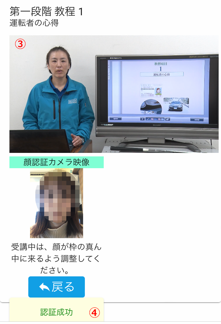 - 受講済の動画を見る場合は 顔認証 は行ないません。