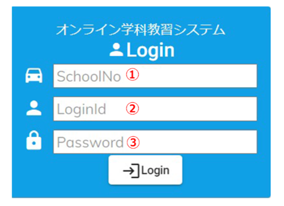 - 教習生は、学校から教えられた「パスワード」を入力します。