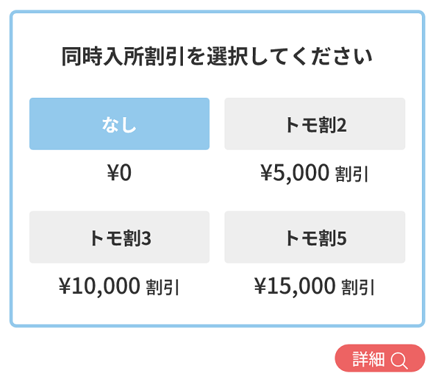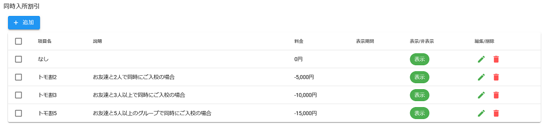 同時入所割引を設定してる場合はこちらの小項目に表示させたい項目を登録します。