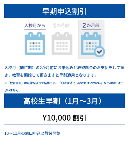 ※ネット割引を表示している学校はごくわずかです。ネット割引を開始した場合はDSEにご連絡ください。