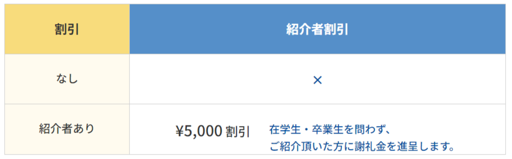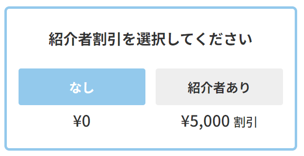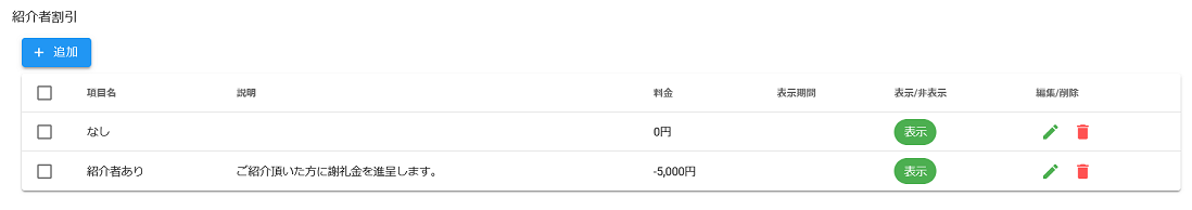 紹介者割引を設定してる場合はこちらの小項目に以下のように登録します。