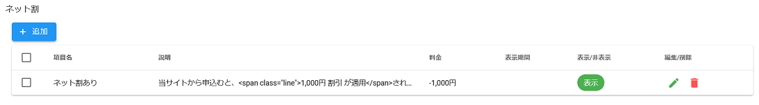 ネット割を設定してる場合はこちらの小項目に「ネット割あり」を登録します。(なしの場合は登録しません。)