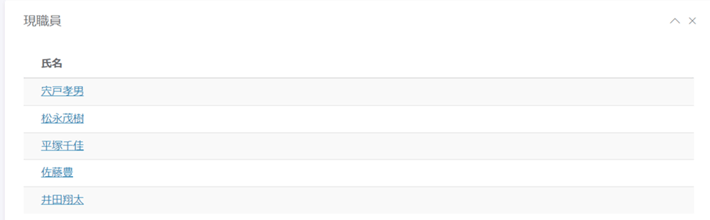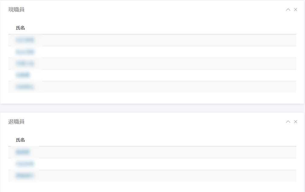 - 退職すると「現職員」の一覧からは消え、「退職員」の欄に移動します。(退職員の一覧はデフォルトは閉じています。下向きの矢印をクリックすると開きます。)