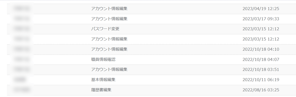 - 「どの内容」を「いつ」変更したか、履歴が表示されます。