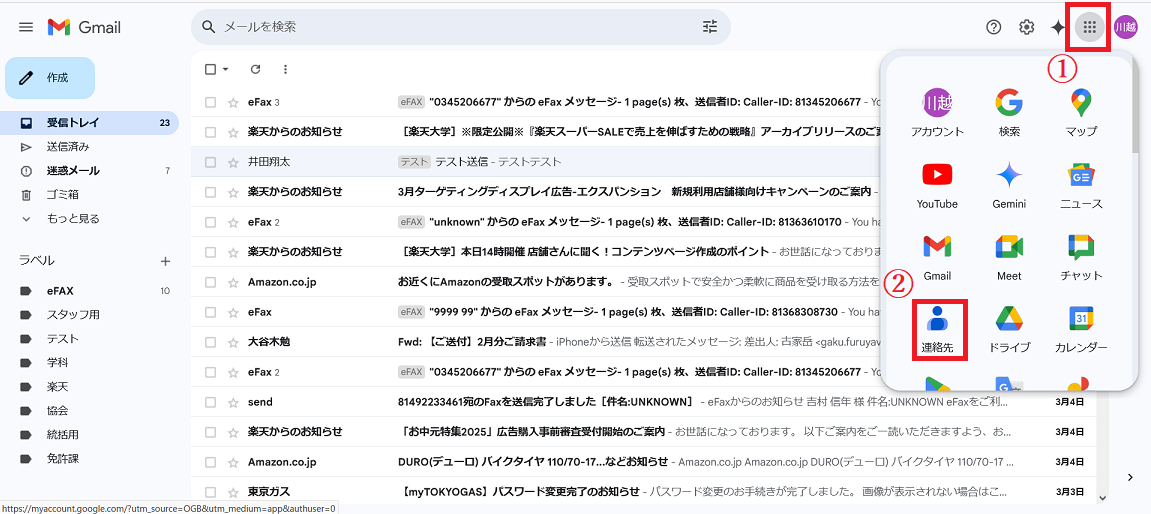 2.「連絡先」をクリックします。