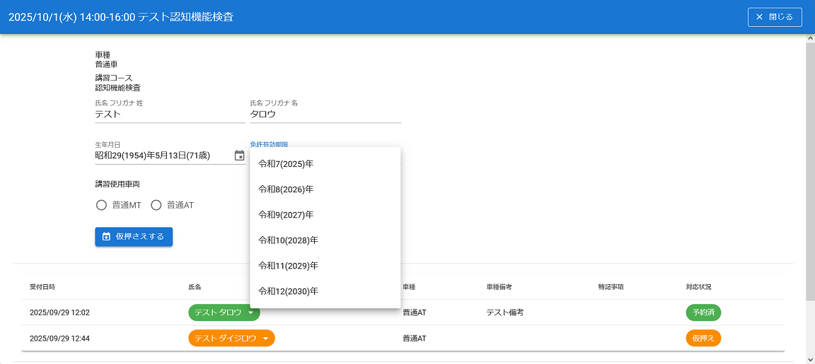 生年月日を選択した後に免許有効期限の入力欄をクリックしたら何年か選択してください。