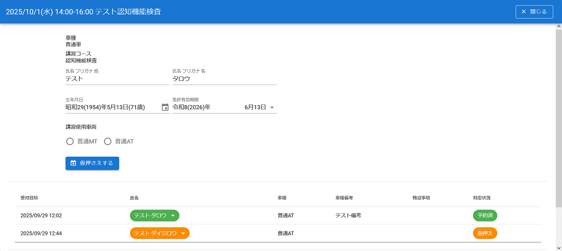 「講習日時変更」ボタンをクリックするとスケジュール画面に飛びます。