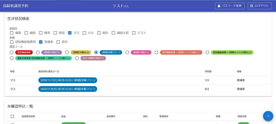 確認ボタンをクリックすれば未確認申込一覧から消えます。(※他のアカウントには影響されません。)