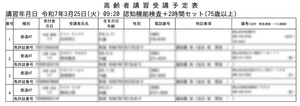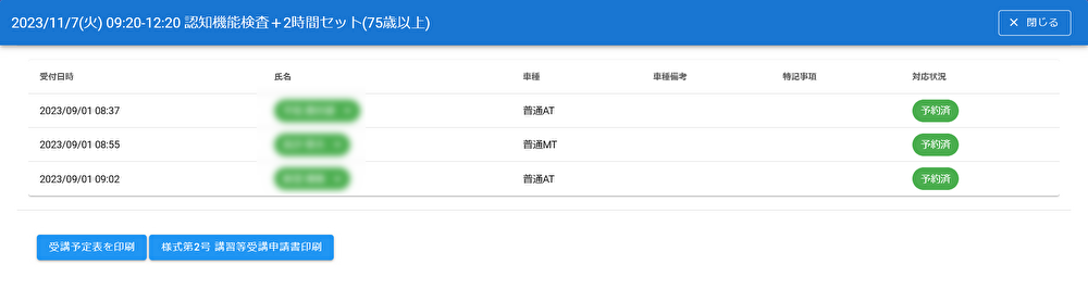 「受講予定表を印刷」ボタンをクリックするとPDFが出力されます。
