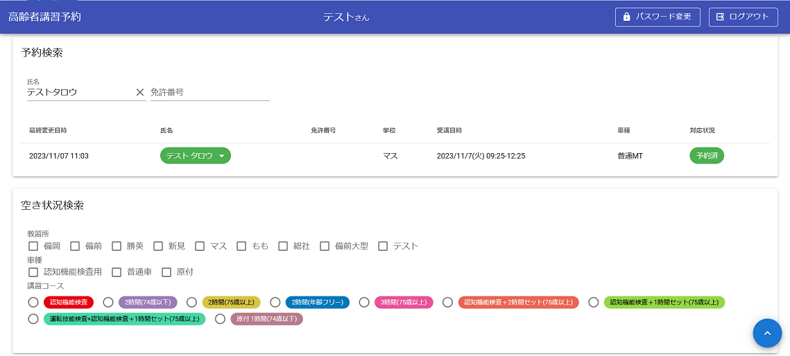 学校ごとに指定されたスケジュールを検索することができます。×は予約枠なしです。
