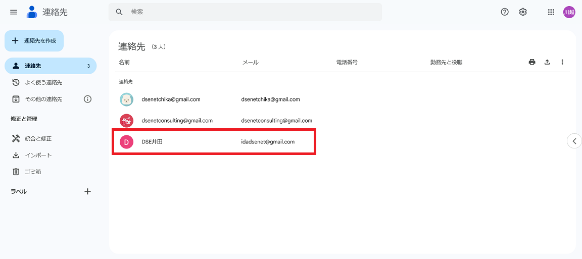作成が完了すれば、登録したGmailアドレスが一覧に表示されます。