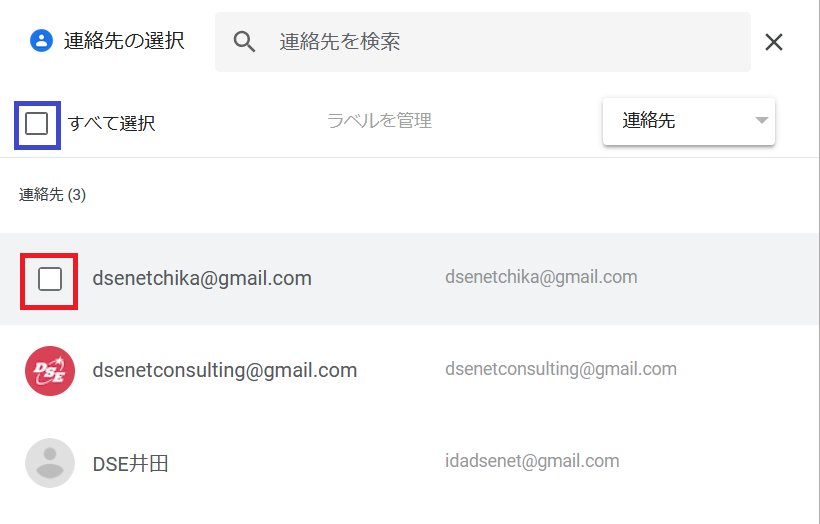 ※青枠のチェックボックスをクリックすると全てチェックが付きます。