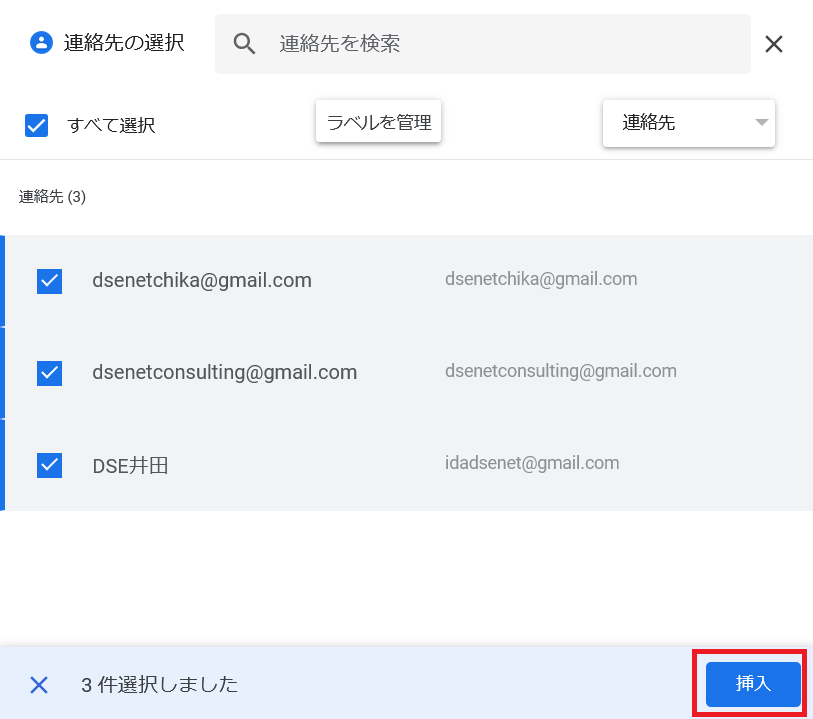 チェックつけ終えたら、赤枠の「挿入」をクリックします。