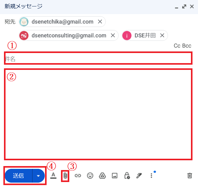 ※Gmailの添付ファイル容量の上限は合計で25MBまでです。